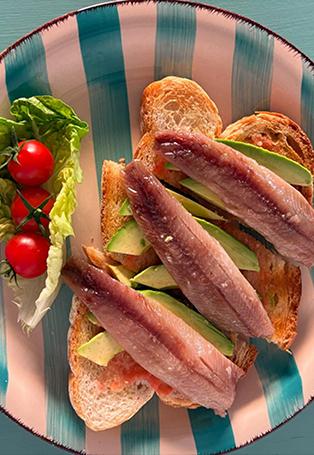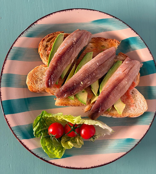 Tosta de sardina ahumada y aguacate