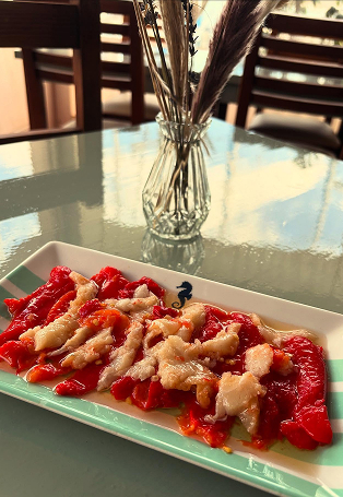 (roasted peppers with cod fish) 12 € -